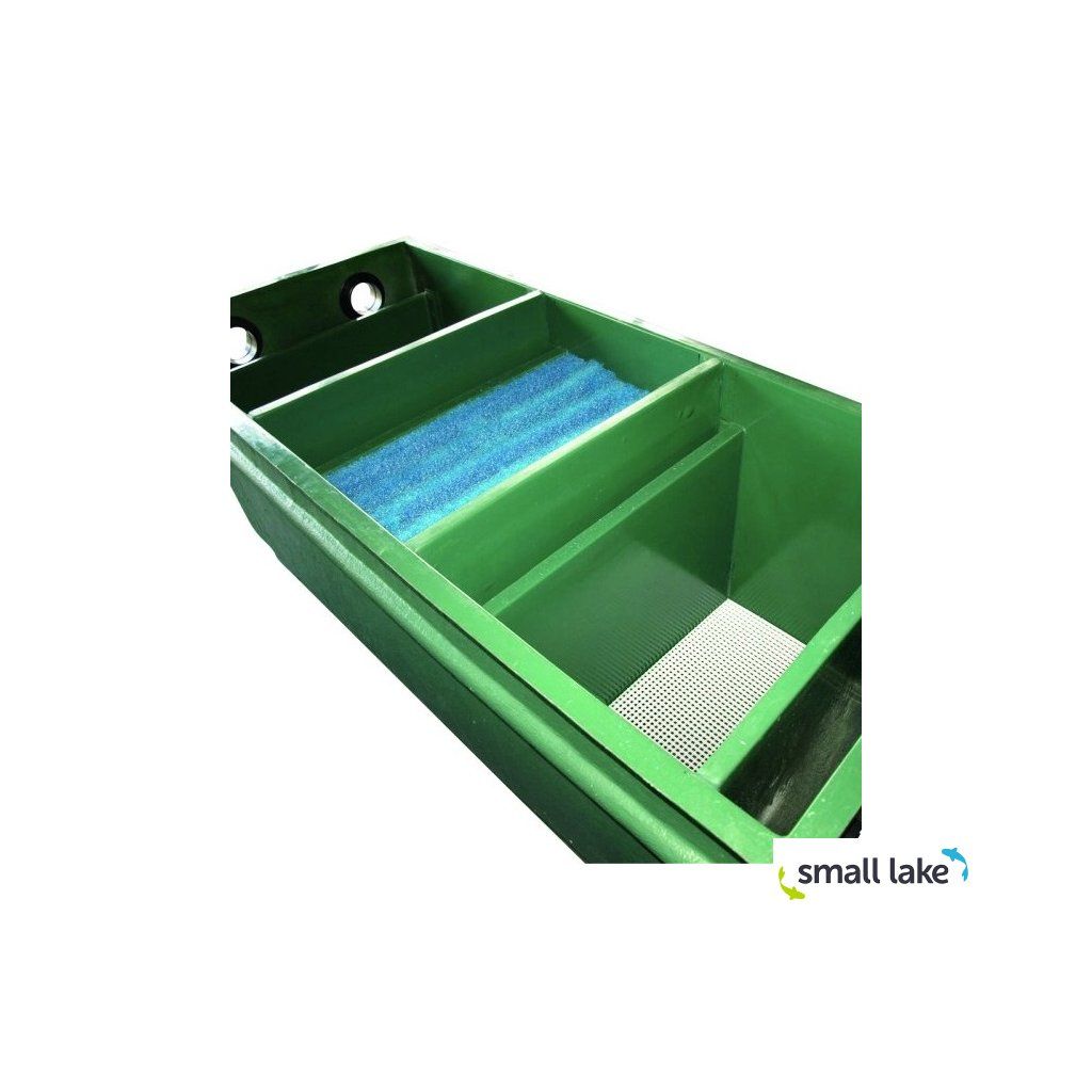 Profesionální filtrace pro zahradní jezírka Tripond v provedení - komorový filtr, je svojí konstrukcí velmi jednoduchá a přitom tolik účinná. Na trhu se nachází již mnoho let a za tuto dobu je prověřena jejich kvalita a spolehlivost. Jejich velikost je v porovnání s konkurencí podstatně větší, ale díky naším zkušenostem můžeme říci, že jejich velikost je adekvátní k udávanému objemu vody v jezírku, který zvládnou přefiltrovat. Sami tyto filtrace používáme při našich realizacích, namontovali jsme již mnoho a nezaregistrovali jsme jediný problém s funkčností filtru. Tripond komorový filtr se používá především v místech, kde není dostatečný prostor pro umístění filtru Tripond center vortex. Je vyroben ze silných plátů laminátu, je tak zajištěna jeho kvalita a trvanlivost. Bezpečně odolává klimatickým podmínkám a i po letech užívání není patrné opotřebení materiálu. Složení jednotlivých komor je různé, záleží totiž na velikosti filtru a počtu komor, které filtr obsahuje. Každá komora obsahuje odkalovací ventil, čištění a odkalování filtru je tak velmi jednoduché a pohodlné. Jednotlivé komory jsou vyspádované směrem k odkalovacímu ventilu, čímž dojde k úplnému odkalení beze zbytku. Tento typ filtru je standardně dodáván bez odstředivky, která zlepšuje účinnost filtru. Zachytává především mechanické nečistoty jako jsou výkaly, řasy, zbytky rostlin, bahno a kal. Odstředivku Vortex lze k filtrům Tripond - komorový filtr přikoupit. Samotná mechanická filtrace je posílena přítomností filtračních kartáčů, které se nacházejí v první komoře. Velmi důležitou roli ve filtru hraje biologická filtrace, která zajišťuje čistou vodu. Platí zde přímá úměra: čím větší plocha biologické filtrace, tím čistší voda v jezírku.Nezapojené filtry je možné vidět na prodejně v případě, že máme tyto filtry skladem.