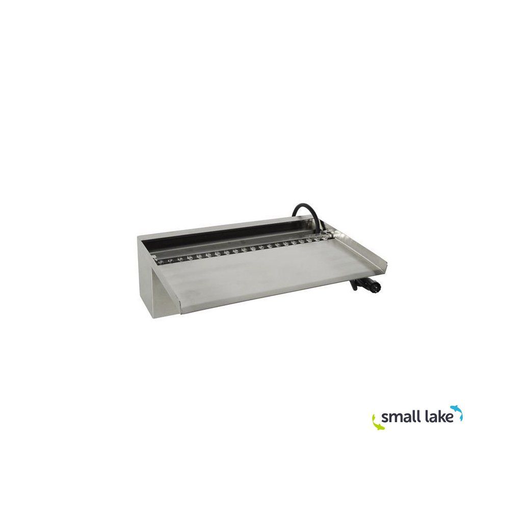 Vodopád Niagara z nerezové ocele s dlouhým odtokem. Nerezová ocel s označením 316 L je odolná vůči chlóru a soli. Použití je tedy možné i k bazénům.