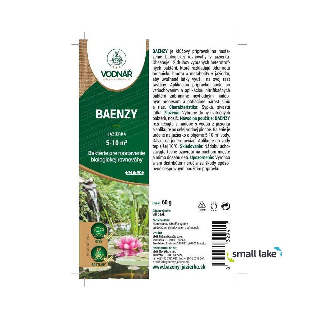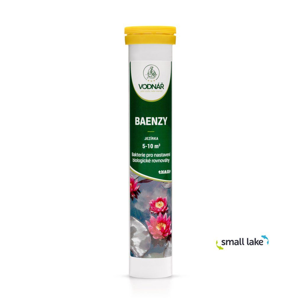 Vodnář Baenzy Start je přírodní a šetrný biologický přípravek určený pro nastartování biologické rovnováhy v jezírku, zejména při jeho jarním probuzení nebo zakládání nového jezírka. Obsahuje směs prospěšných heterotrofních bakterií a enzymů, které rozkládají organické zbytky (listí, zbytky rostlin, krmivo, výkaly ryb) a přirozeně čistí a projasňují vodu.