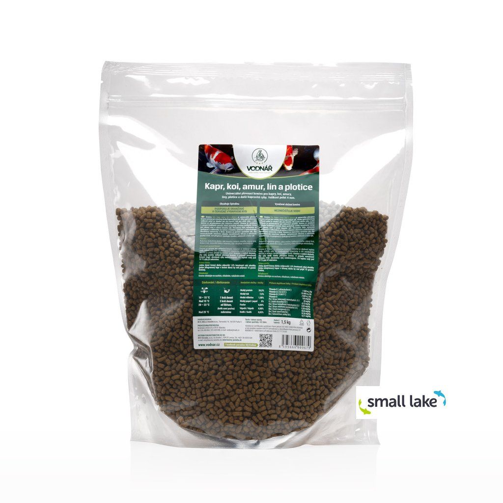 Krmivo Kapr, koi, amur, lín a plotice je kvalitní univerzální plovoucí krmivo určené pro všechny druhy kaprovitých ryb v jezírkách i chovných nádržích. Díky vyváženému složení a pečlivě zvoleným surovinám poskytuje rybám všechny důležité živiny potřebné pro zdravý růst, dobrou kondici a silnou imunitu po většinu roku.