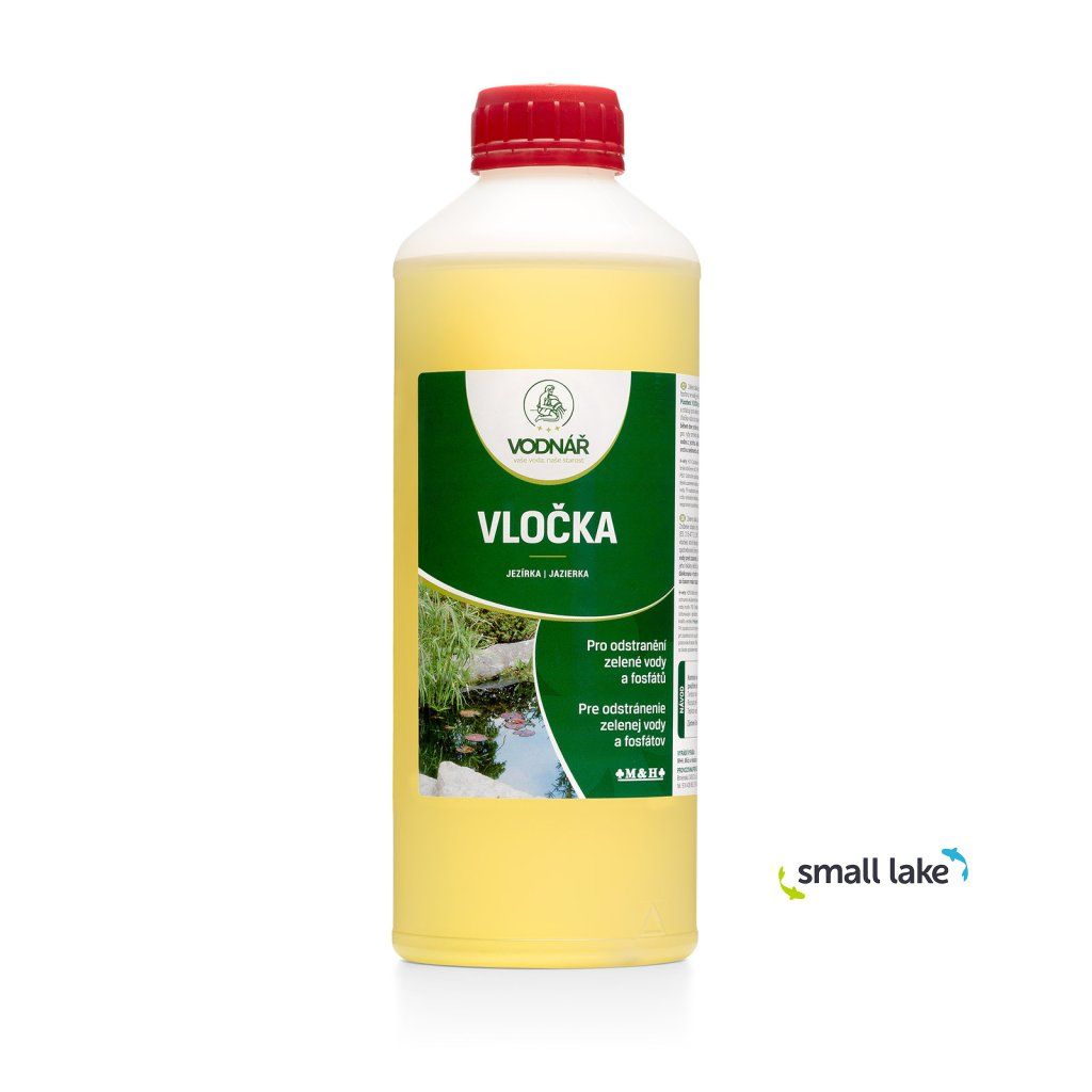Vodnář Vločka jezírka účinně odstraňuje zelený zákal způsobený jednobuněčnými řasami a sinicemi. Po aplikaci se ve vodě vytvoří jemná sraženina, která váže mikroskopické nečistoty a fosfor. Tyto částice se poté shlukují do větších vloček, které klesají na dno nebo se dají snadno odstranit skimmerem či síťkou.